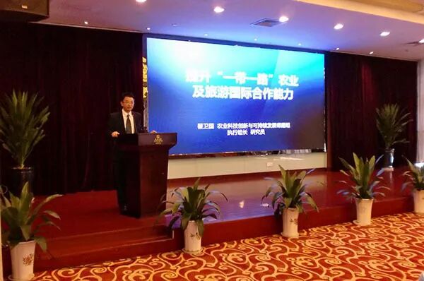 全国合作经济工作委员会专家委员会副主任,中国金融学会绿色金融专家专委会委员、教授瞿卫国先生就提升一带一路农业及旅游国际合作进行了专题演讲。他就中国企业怎么走出去融入一带一路,如何走出去,留下来进行了阐述;并就“一带一路”对中国农业及旅游的影响、如何实施全球农业及旅游发展战略、对外农业及旅游合作建议及案例、我国中小企业怎么融入“一带一路”等多个方面深入浅出地从理论到实践,讲述了中国农业企业走出去、融进去、留下来和农业产业链的建设发展特点。